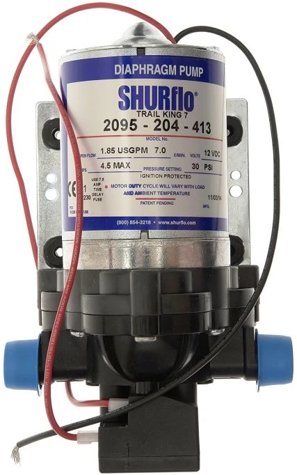 Built in check valve. Fittings included. Pressure setting 30PSI. Max output 10 litres per min.