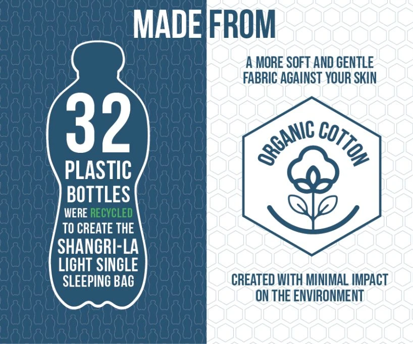 - Organic Polycotton Shell- Created using a mixture of recycled polyester and organic cotton to create a high quality, sustainable polycotton fabric. This shell fabric offers increased comfort, softness and a luxury home from home sleeping experience.